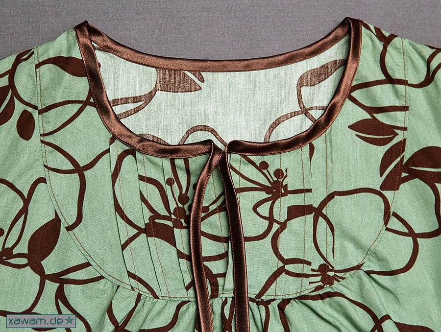 Genäht habe ich die Version mit Bisen im Einsatz und Gummis im Ärmelsaum. Die Länge habe ich zwischen den beiden im ebook enthaltenen Versionen gewählt.Den Halsausschnitt habe ich mit Satin-Schrägband eingefasst.